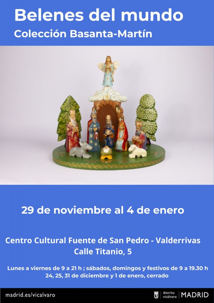 El Centro Cultural Fuente de San Pedro, en el distrito de Vicálvaro, presenta la exposición «Belenes del Mundo», una muestra de la Colección Basanta-Martín que estará disponible para el público del 29 de noviembre al 4 de enero.